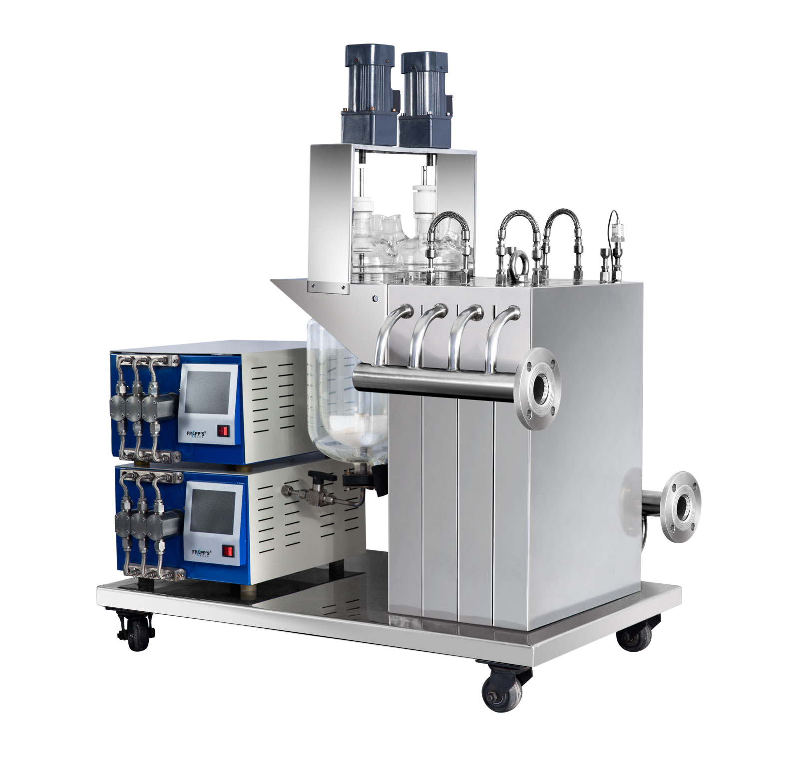 微通道反应器是在高压恒流泵推动下进行反复撞击的原理进行反应,有效提高收得率,缩短反应时间,减少副反应的发生,完全消除放大效应。